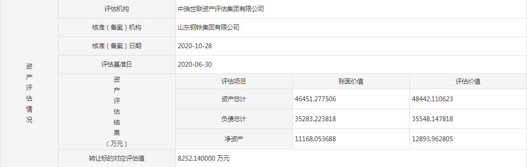 另据中瑞世联资产评估集团有限公司评估,标的企业4.84亿元,负债总额3.55亿元,净资产1.29亿元,推算转让评估值为8252.14万元。
