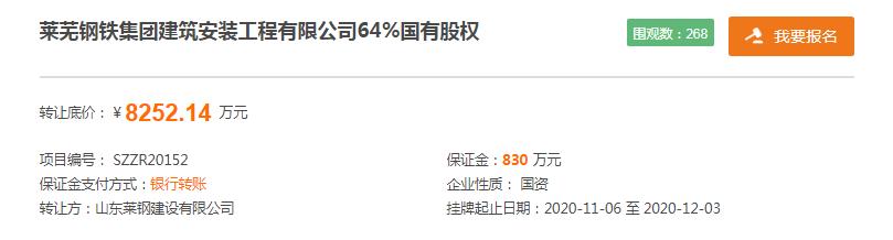 而后,在今年9月27日,莱钢建安公司64%股权转让的项目,曾进行信息预披露,当时的转让价未定,后因时间到期而撤牌。
