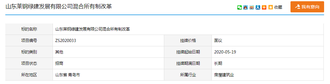 资料显示,同样作为莱钢建设全资子公司的山东莱钢绿建发展有限公司(简称“莱钢绿建发展公司”),在今年5月时也曾发布混改项目,拟通过股权转让方式引入战略投资者进行合作,股权结构可协商确定。