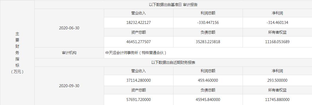据其财务数据了解,标的企业截止今年9月底时,营收3.71亿元,资产总额5.77亿元,负债总额4.59亿元。值得一提的是,截止9月底,标的企业净利润由亏转盈,达293.50万元。