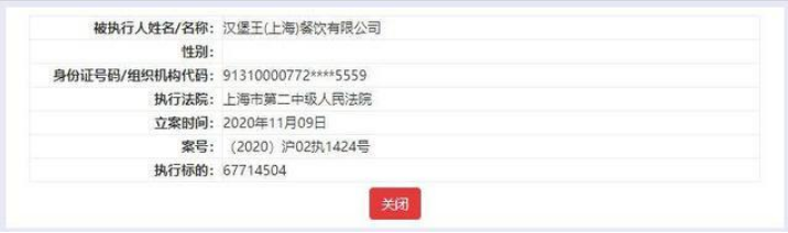 鲁网·泰山财经记者今日从中国执行信息公开网获悉,11月9日,汉堡王(上海)餐饮有限公司成为被执行人,执行法院为上海市第二中级人民法院,案号(2020)沪02执1424号,执行标的67714504元。