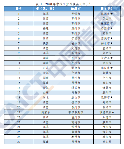 根据中国信通院发布的“2020年中国工业百强县(市)发展报告”,我国工业百强县(市)主要聚集在东部省份,江苏、浙江数量和排名都较为领先。