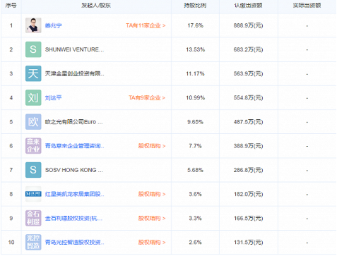 目前,从股权结构方面来看,公司创始人姜兆宁持股比例17.60%,为公司第一大股东。而在前十大股东里,不乏红星美凯龙、金石利璟等知名企业和投资机构。