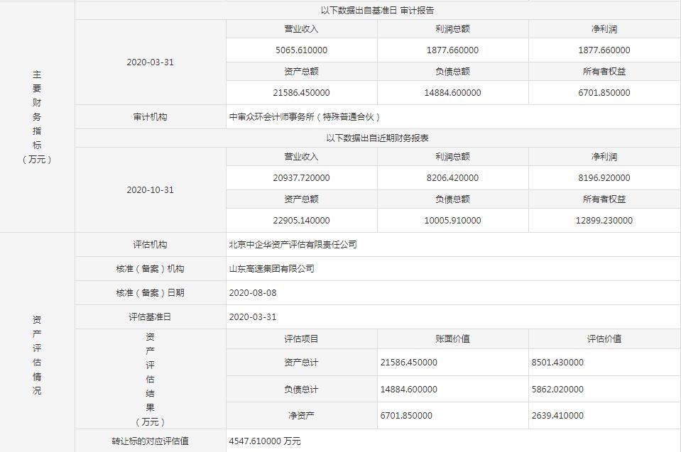 今年3月底时,北京中企华资产评估有限责任公司曾对标的企业进行评估,该企业资产总计8501.43万元,负债总计5862.02万元,净资产2639.41,推算转让值为4547.61万元。