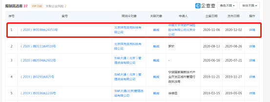 鲁网·泰山财经记者发现,这并不是拜克洛克与戴威第一次收到限制消费令,今年8月份,该公司与戴威便收到来自长沙市雨花区人民法院的限制消费令,申请人为罗欣。另,据企查查显示,戴威目前累计被法院限制高消费近40次。记者 于雅雯