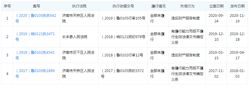 企查查数据显示,标的企业自2017年起,多次被列为被执行人,今年9月更因与济南市天桥区人力资源和社会保障局发生的案件中,存在违反财产报告制度的失信行为,第4次被列为被执行人。正是因为本次案件,其法人刘勇被限制了高消费。(记者 吴奕萱)