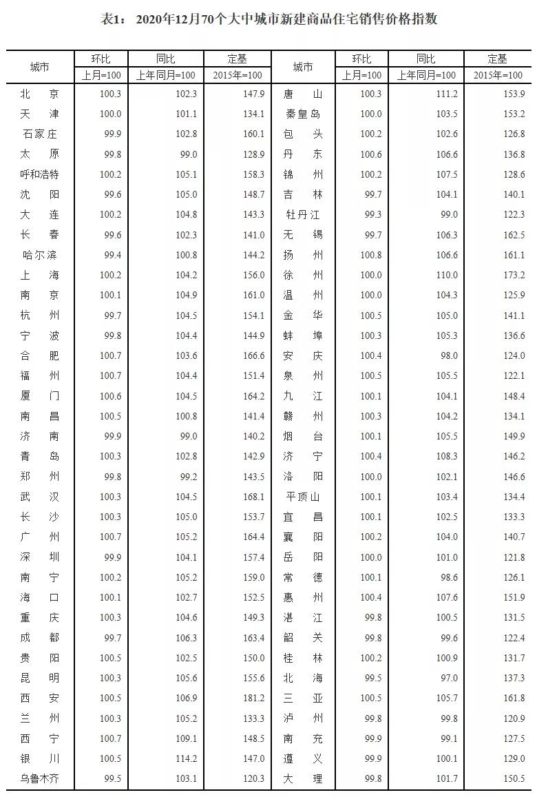 对此,国家统计局城市司高级统计师绳国庆进行了解读。2020年12月份,各地深入贯彻党中央、国务院部署,全面落实房地产长效机制,因地制宜、多策并举,促进房地产市场平稳健康发展,70个大中城市房地产市场价格稳中略涨。