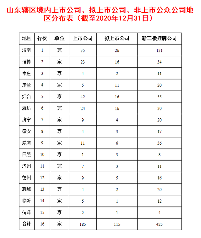 从上市储备来看,到2020年底,山东辖区(不含青岛)拟上市公司(也就是进入辅导程序的企业)数量达115家,创历史新高。截至2020年11月30日,青岛辖区拟上市公司数量达到31家。