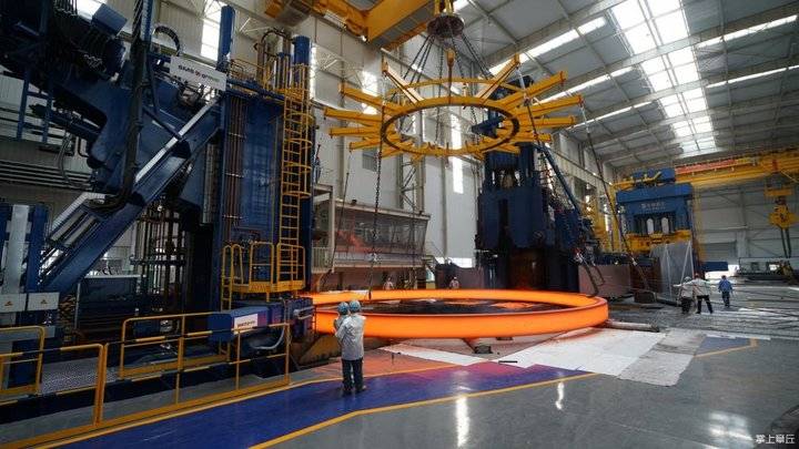 在伊莱特能源装备公司,记者看到,巨大的碾环机正在轧制外径6米、单重数十吨的环形大锻件。2018年伊莱特投产了高合金钢及有色金属大锻件项目,产品在核电风电、航空航天等领域广泛应用,助力我国锻件大型化走在世界前列。