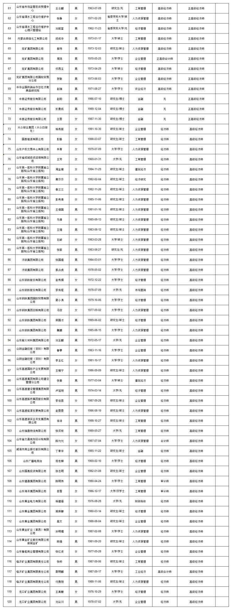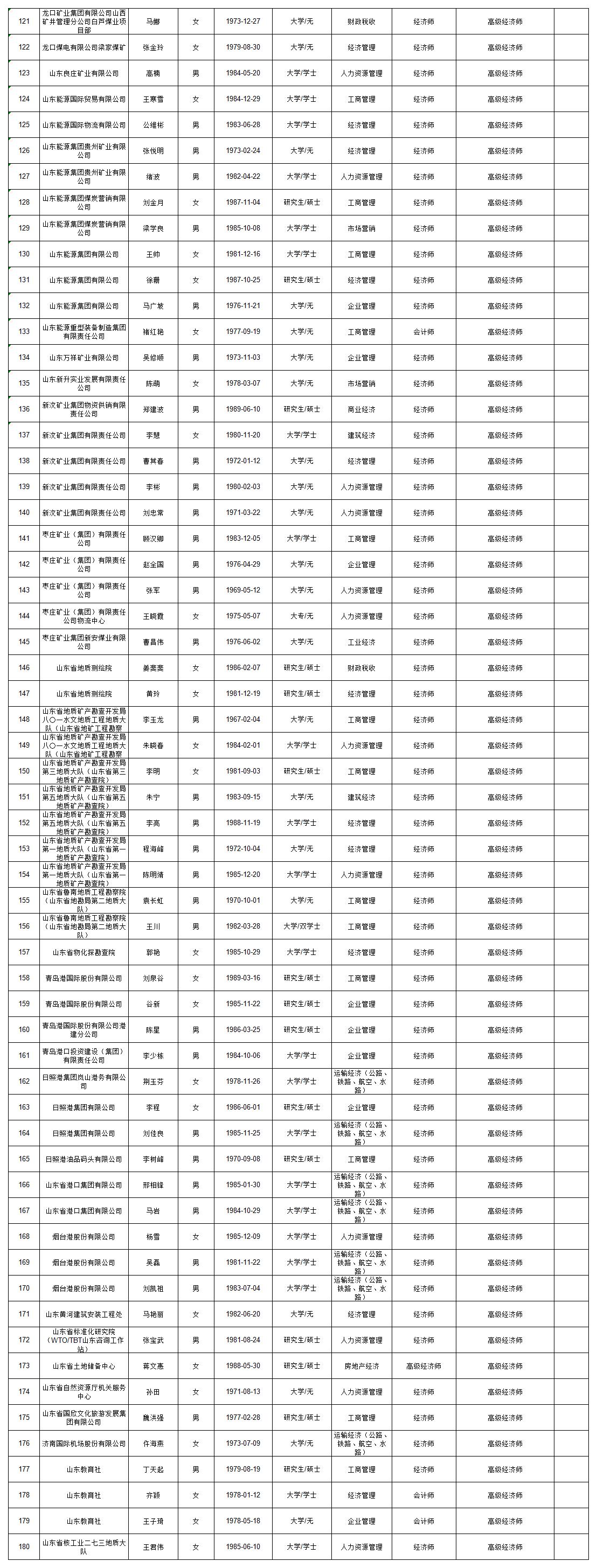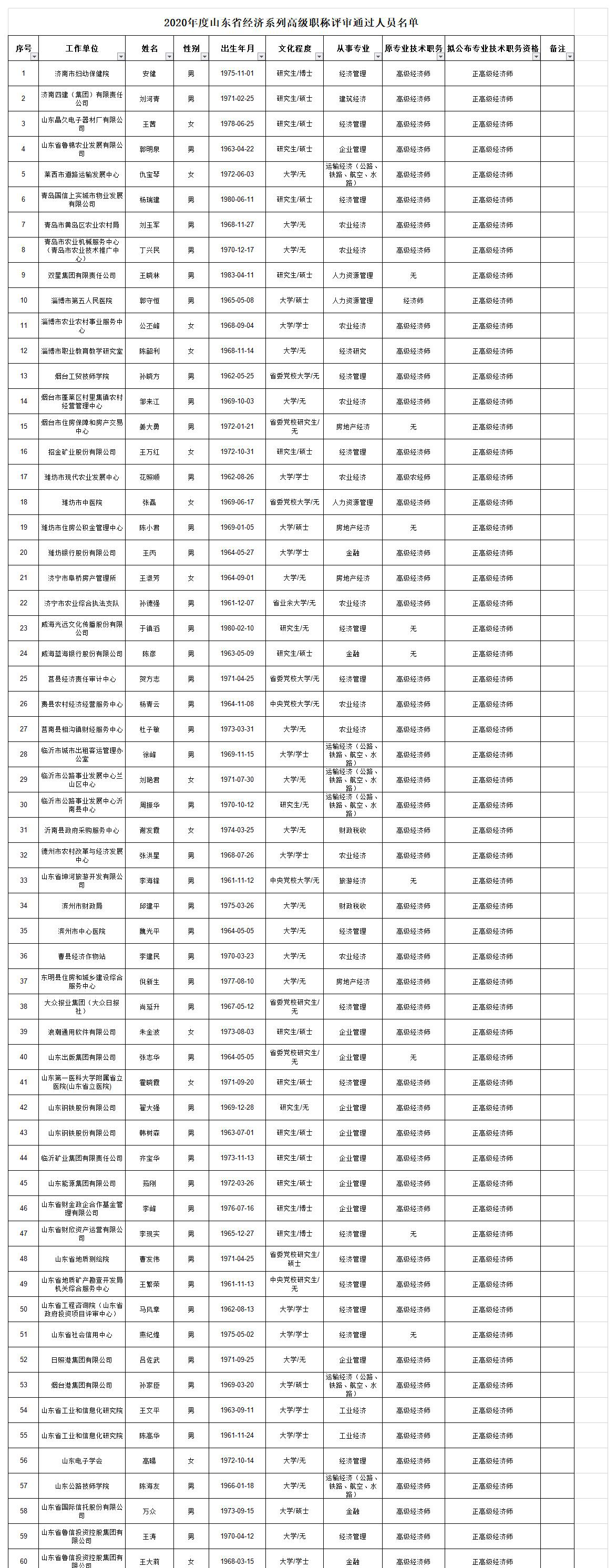 附:2020年度山东省经济系列高级职称评审通过人员名单