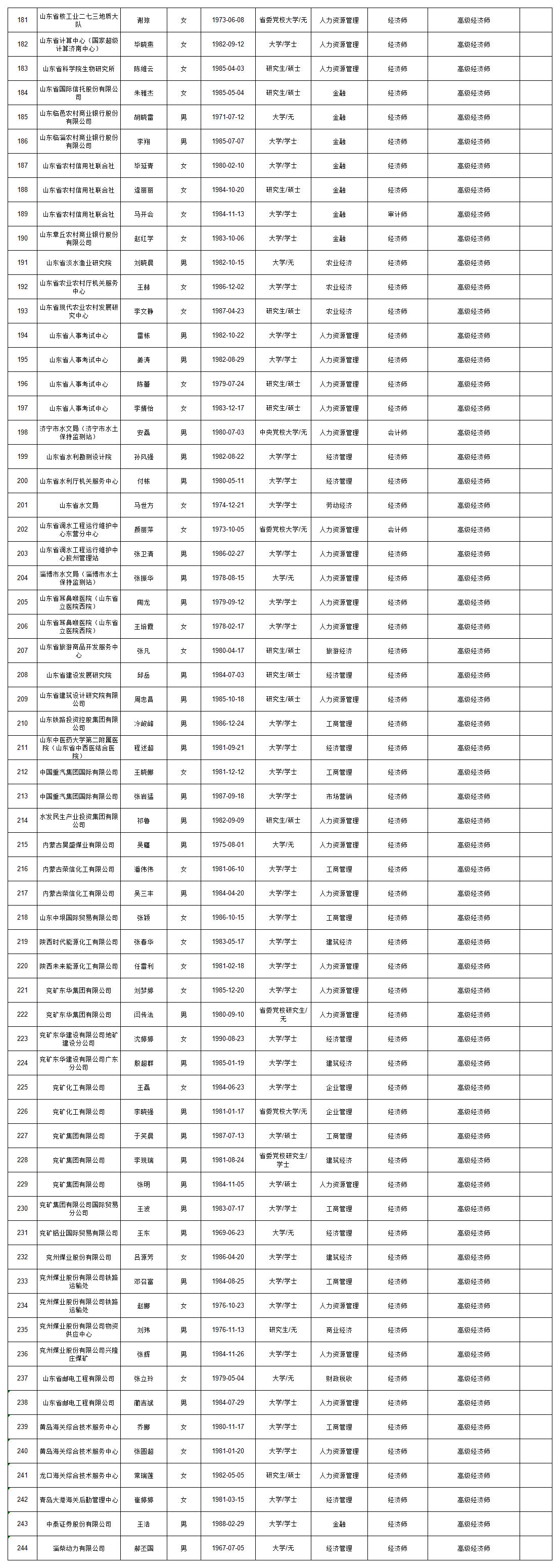 鲁网·泰山财经记者从山东省工业和信息化厅获悉,近日,2020年度山东省经济系列高级职称评审通过人员实行异议期公示,共244名人员通过评审。其中,正高级经济师72人,高级经济师172人。
