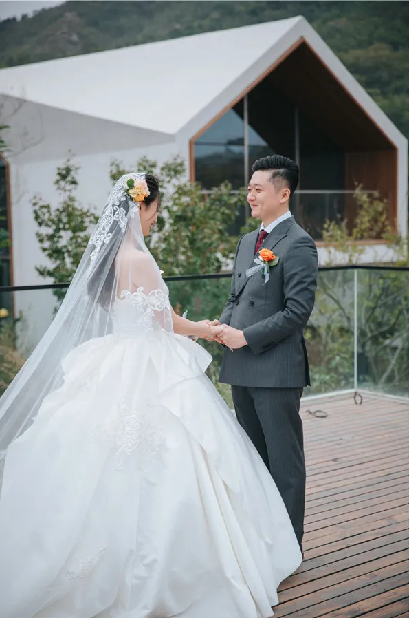 清新的空气,碧绿的群山以及人与自然和谐统一的设计风格,让她一眼相中了八楼氧心谷的户外场地。从全国各地来的40余名亲朋好友见证了一场新颖的乡村婚礼。