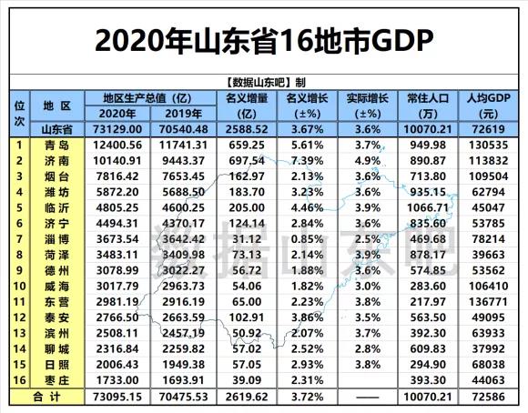 图片来源:数据山东贴吧 数据来源:山东各市统计局