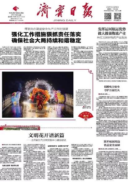 济宁日报头版头条聚焦该市安全生产工作视频调度会,在第二版转发新华社评论《牛开丰穗景 雨动辛丑春》。