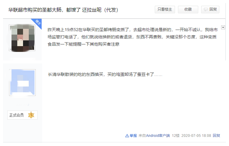 据一位长清市民回忆,济南华联超市曾是大家期待的大型连锁超市,长清店在开业当天人气很旺,不过逛过之后就有人抱怨,东西不如济南市区的门店全。鲁网·泰山财经记者在百度贴吧长清吧里注意到,不少逛过的顾客吐槽装修味道大,超市面积小,货品不全还贵。更有市民发帖“喊话”济南华联,反应自己买到了变质产品,但超市员工拒不承认,当向市监部门投诉后才得以重新更换。