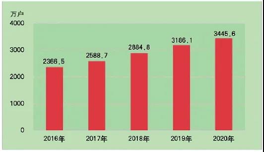图13:2016-2020年末(固定)互联网宽带接入用户数