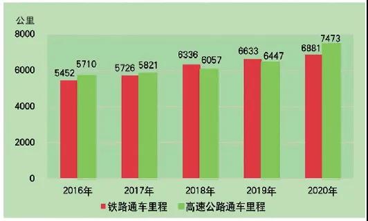 图6:2016-2020年铁路通车里程和高速公路通车里程
