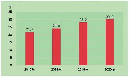 图4:2017-2020年“四新”经济增加值占地区生产总值比重
