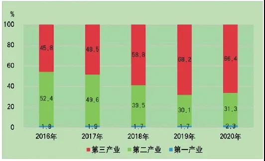 图2:2016-2020年三次产业增加值占地区生产总值比重