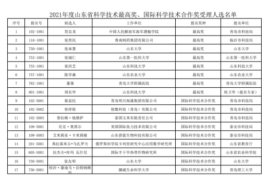 日前,山东省科学技术厅网站发布《2021年度山东省科学技术奖受理项目公示》,其中山东省科学技术最高奖8人、国际科学技术合作奖9人。鲁网·泰山财经记者注意到,在山东省科学技术最高奖受理人选名单中,鲁南制药集团有限公司(以下简称“鲁南制药”)董事长张贵民在列,是唯一一位入选的企业高管。