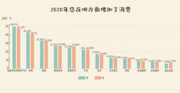 女性更愿意为什么买单,大调查发现,排在前三位的是旅游、保健养生和教育培训。相比之下,男女在购物清单上的整体差别并不大,在运动健身和美容美妆上女性高于男性,当问到为了健康愿意做哪些改变时,女性加强健身的比例也高于男性。