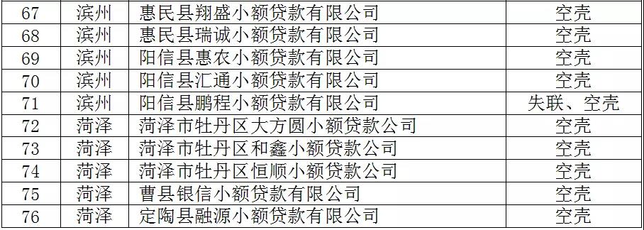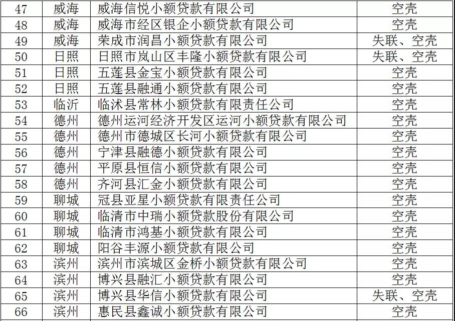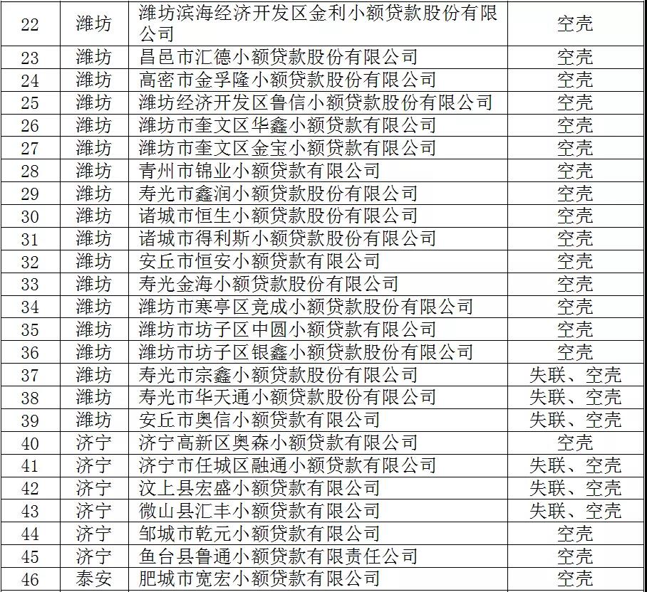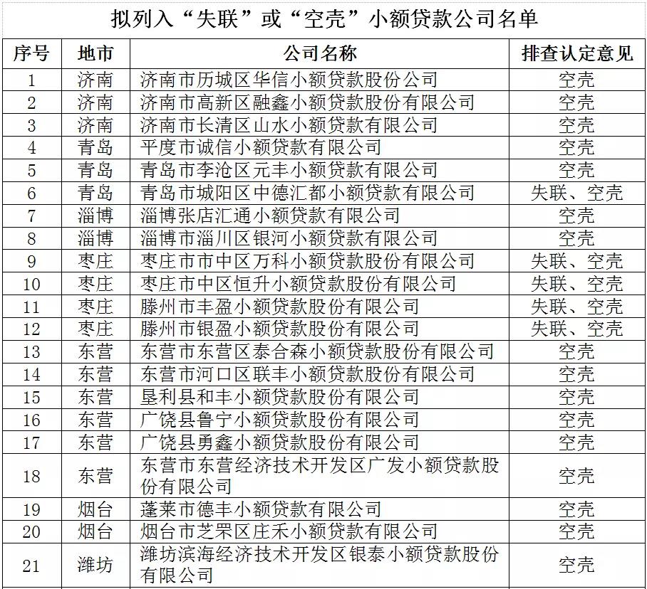 近日,山东省地方金融监督管理局发布全省拟列入“失联”或“空壳”小额贷款公司名单公示。