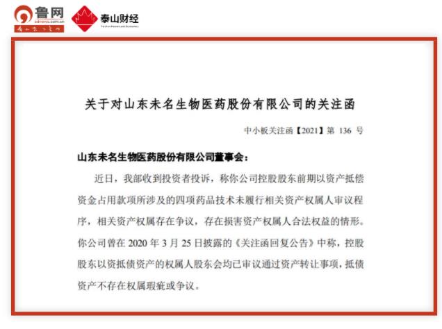 关注函称要求未名医药就上述事项做出书面说明,并在2021年3月23日前将有关说明材料报送中小板公司管理部并对外披露,同时抄报山东证监局上市公司监管处。鲁网·泰山财经记者 冯明月