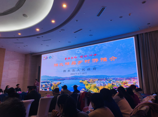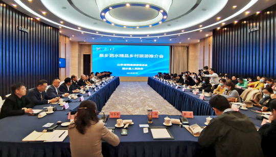 推介会由泗水县文化和旅游局局长汤颖主持,山东省精品旅游促进会副会长董廷之、泗水县政府副县长许杰夫先后致辞。在观看了泗水旅游宣传片后,泗水县文化和旅游局推介了泉乡泗水精品乡村旅游,山东万紫园旅游开发有限公司、山东等闲谷艺术粮仓文化发展有限公司主要负责人分别推介了万紫千红景区、等闲谷艺术小镇两个项目。