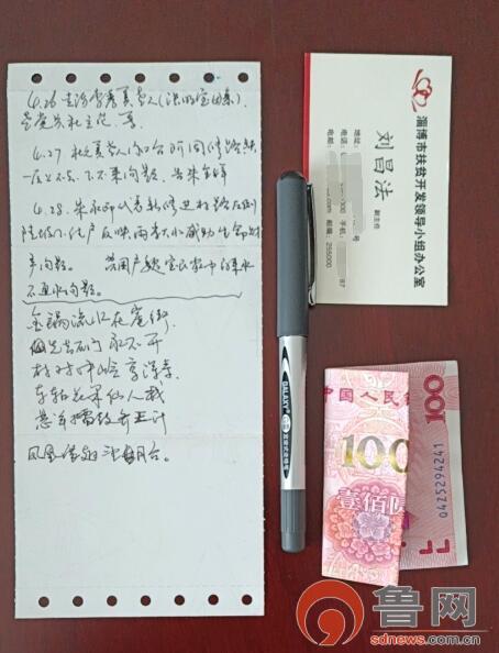 平时在村里走访,刘昌法随身必带四样“宝贝”:一支签字笔、一张叠起来的纸、几百元钱和一沓便民联系卡。