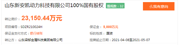今日,邹平市国有资产中心全资企业山东梁邹金属科技集团有限公司(简称“梁邹金属”)发布公告称,拟降价1849.56万元,二次挂牌转让山东新安凯动力科技有限公司(简称“新安凯”)100%股权,转让时间为4月8日至5月7日。鲁网·泰山财经记者注意到,2018年起新安凯等15家企业因破产合并重组,涉及债权金额21.69亿元,但截至2020年12月,该企业仍在正常经营,净利润435.66万元。