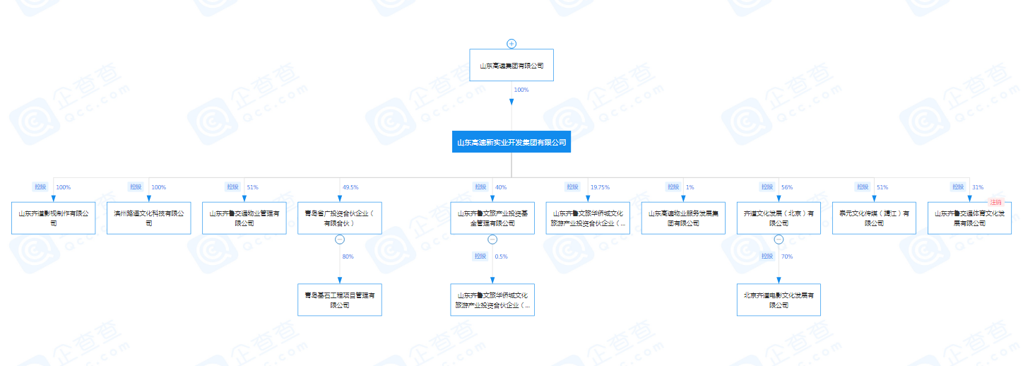 此外,鲁网·泰山财经记者在企查查注意到,目前山东高速新实业集团下设控股企业共11家,除本次待转让的泰元文化传媒(靖江)有限公司位于江苏省靖江市,齐道文化发展(北京)有限公司、北京齐道电影文化发展有限公司两家企业位于北京外,剩余企业均分布于山东省。