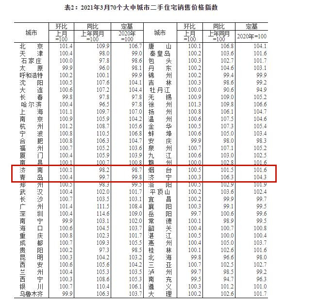 二手房方面,与上月相比,4市价格也均小幅上涨,但整体变动幅度不大。其中济南环比上涨0.1%,青岛环比环比上涨0.4%,烟台环比上涨0.5%,济宁环比上涨0.3%。