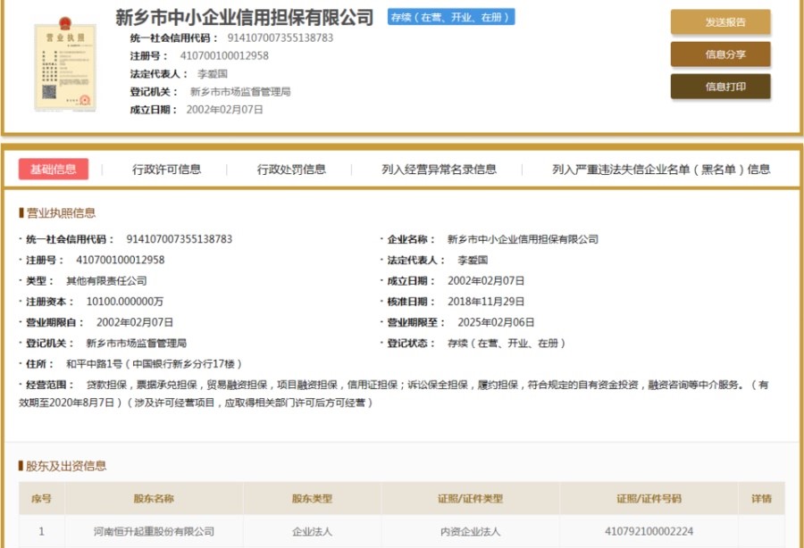 资料显示,此次被拍卖股权的新乡市中小企业信用担保有限公司成立于2002年2月,主营贷款担保,票据承兑担保,贸易融资担保,项目融资担保,信用证担保;诉讼保全担保,履约担保,符合规定的自有资金投资,融资咨询等中介服务。