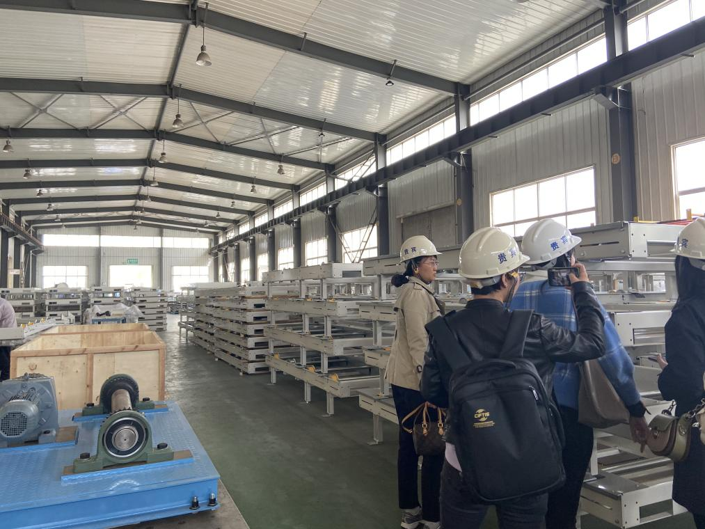 据公司总经理田湘泉介绍,公司主要产品分两大类,一是空中输送设备,包括摆杆链输送系统、积放式悬挂输送设备、空中摩擦传输设备、空中电车;二是地面输送设备,包括翻浸式电车输送系统、滑橇输送系统、地面摩擦传输设备、各类链式传输设备等。其中摆杆式输送系统2019年被评为山东省首台套产品,2020年TFTM1乘用车总装主线高效搬送装置被评为济南市首台套产品。