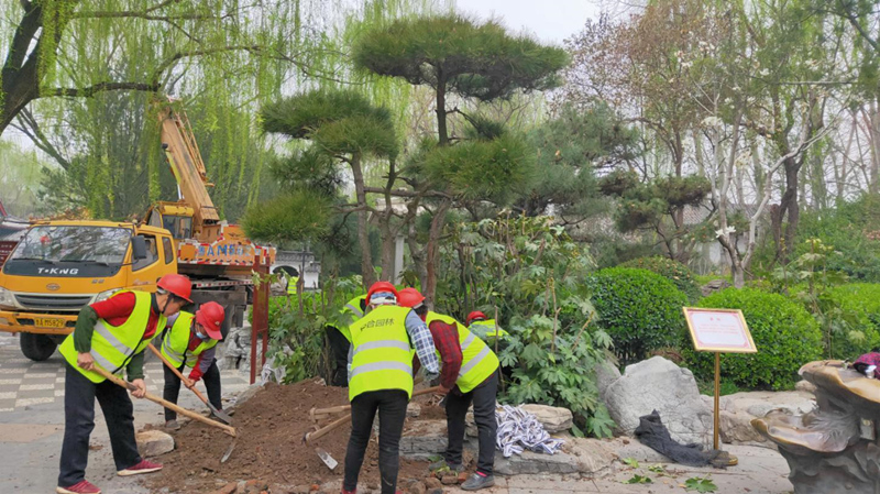 为了给广大游客提供一个更加优质的旅游环境,节前趵突泉景区对园区及时进行绿化养护工作,栽种花草树木,布展“五一”花坛,积极防控防治柳絮问题。另外,提前对景区内的场馆、水电线路等进行了检查维护,对场馆设施进行维修改造。