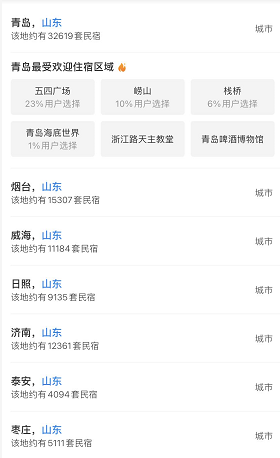 携程旅行APP搜索显示,APP内青岛民宿房源数量最多,山东省内多地民宿预订率在90%以上。鲁网·泰山财经记者搜索“山东”发现,APP中青岛民宿房源数量遥遥领先,为32619套,其次是烟台、威海、日照和济南。按各地市搜索,五一节假日省内有多地民宿预订率在90%以上。APP数据显示,5月1日至5日,日照有95%的民宿已售完,青岛94%民宿已售完,济南民宿预订率达92%,泰安、枣庄民宿预订率均为90%。