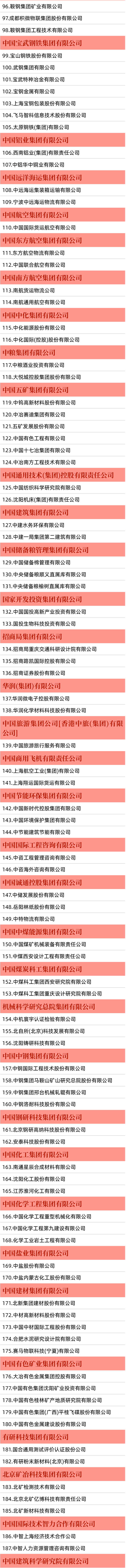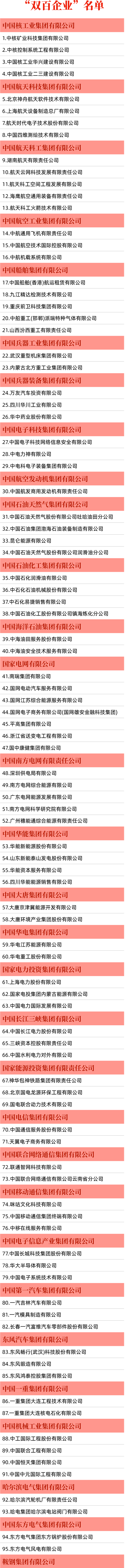 日前,国务院国资委网站公布最新“双百企业”名单,详细如下: