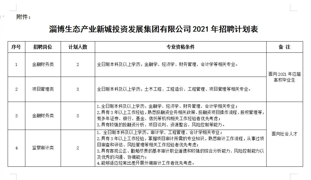 淄博生态产业新城招商投资有限公司部门经理1名,部门副经理1名,主要负责建陶产业园项目建设、日常运行、尽调评估、行业招商、招商线索搜集挖掘、招商项目服务等工作。
