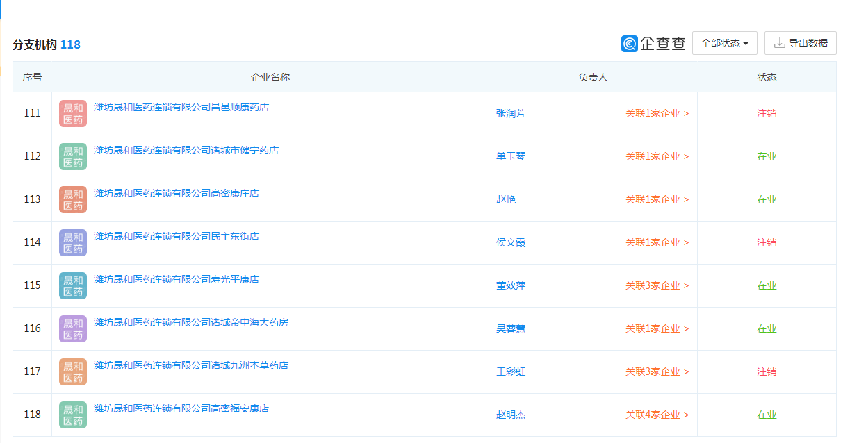 开业11年来,这家企业已在潍坊布局门店118家,但近年来,晟和医药却先后注销、倒闭了54家门店,如今在营门店仅剩64家。