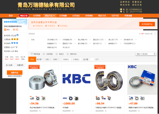 据悉,万瑞德轴承目前为1688网站卖家,万瑞德轴承入驻1688已有8年,据1688万瑞德轴承公司黄页显示,万瑞德轴承代理销售进口轴承、瑞典SKF轴承、德国FAG轴承、日本NSK、美国TIMKENC等国际知名品牌的进口轴承。万瑞德轴承称公司目前轴承销售用于冶金,汽车,电动等各行业,客户遍及世界各地,其销售行业也涉及工矿企业、钢厂、机械设备等多种领域。