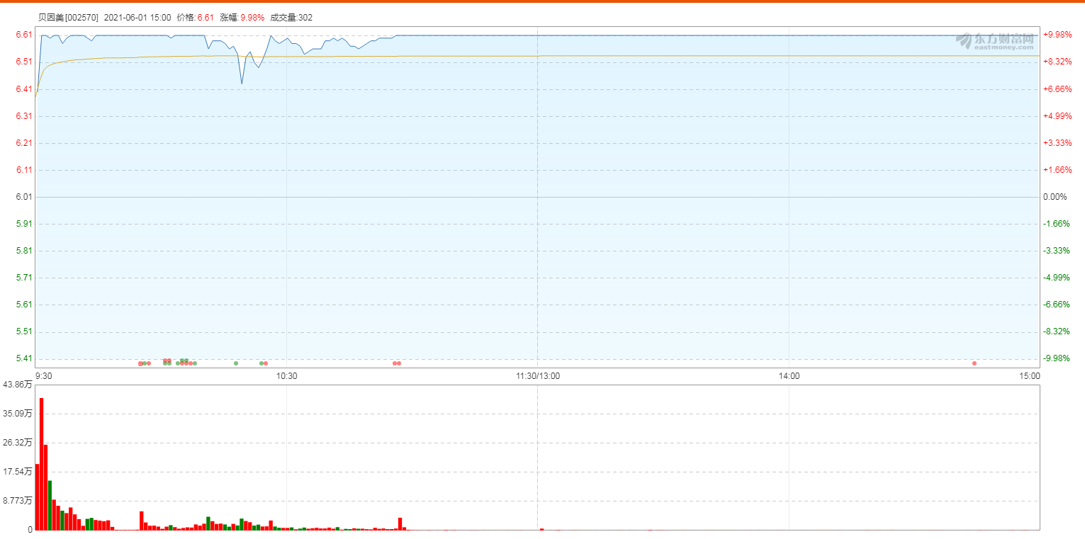 “三胎”政策一出,作为婴幼儿“刚需”的配方奶粉,立即就火爆了起来。多家乳企板块纷纷拉升,其中,贝因美开盘价为6.41元/股,收盘价6.61元/股,涨幅为9.98%,三元股份、光明乳业等企业也都保持了上涨趋势。