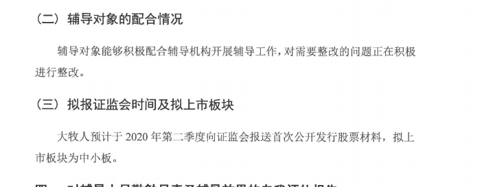 值得一提的是,2019年第四季度及之前的辅导报告,青岛大牧人拟上市板块均为中小板。而自2020年第一季度辅导报告之后,青岛大牧人拟上市板块改为创业板。