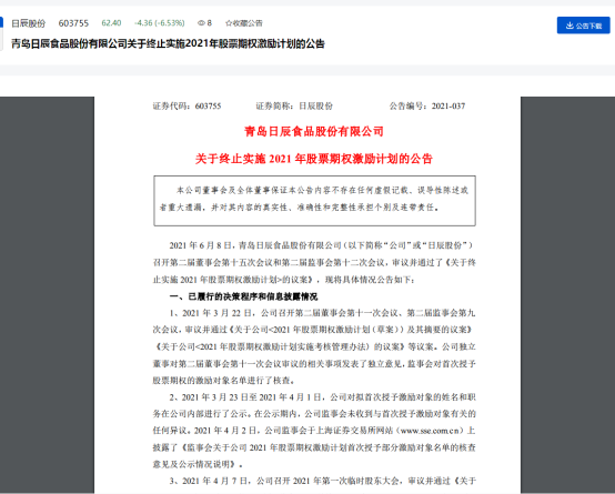 10日,青岛日辰食品股份有限公司(日辰股份.603755 .SH)发布公告,称终止实施2021年股票期权激励计划。