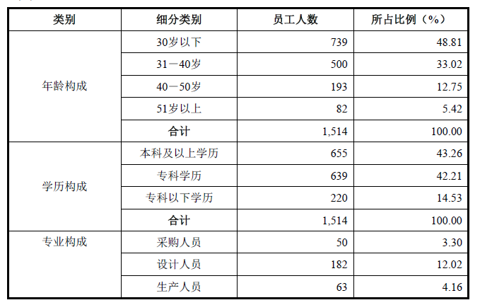 鲁网·泰山财经记者注意到,德才装饰吸引了众多年轻、高学历人才加入。截至2019年12月底,德才装饰共有1514名员工,其中48.81%的员工在30岁以下,43.26%的员工学历在本科及以上,主要从事技术研发工作的人员有7%,工程人员则有52.05%。