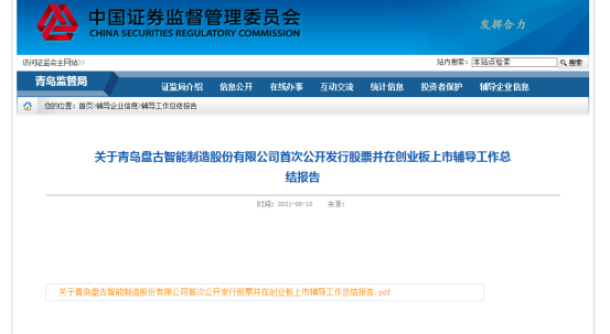 鲁网·泰山财经记者自中国证券监督委员会青岛监管局获悉,青岛盘古智能制造股份有限公司(以下简称“盘古智能”)已于近日完成上市辅导,拟冲刺创业板。
