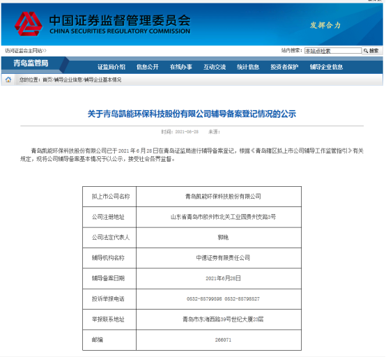 28日,中国证券监督管理委员会青岛监管局披露企业辅导信息,鲁网·泰山财经记者注意到新三板青岛凯能环保科技股份有限公司(凯能科技.838388.OC)已备案辅导。