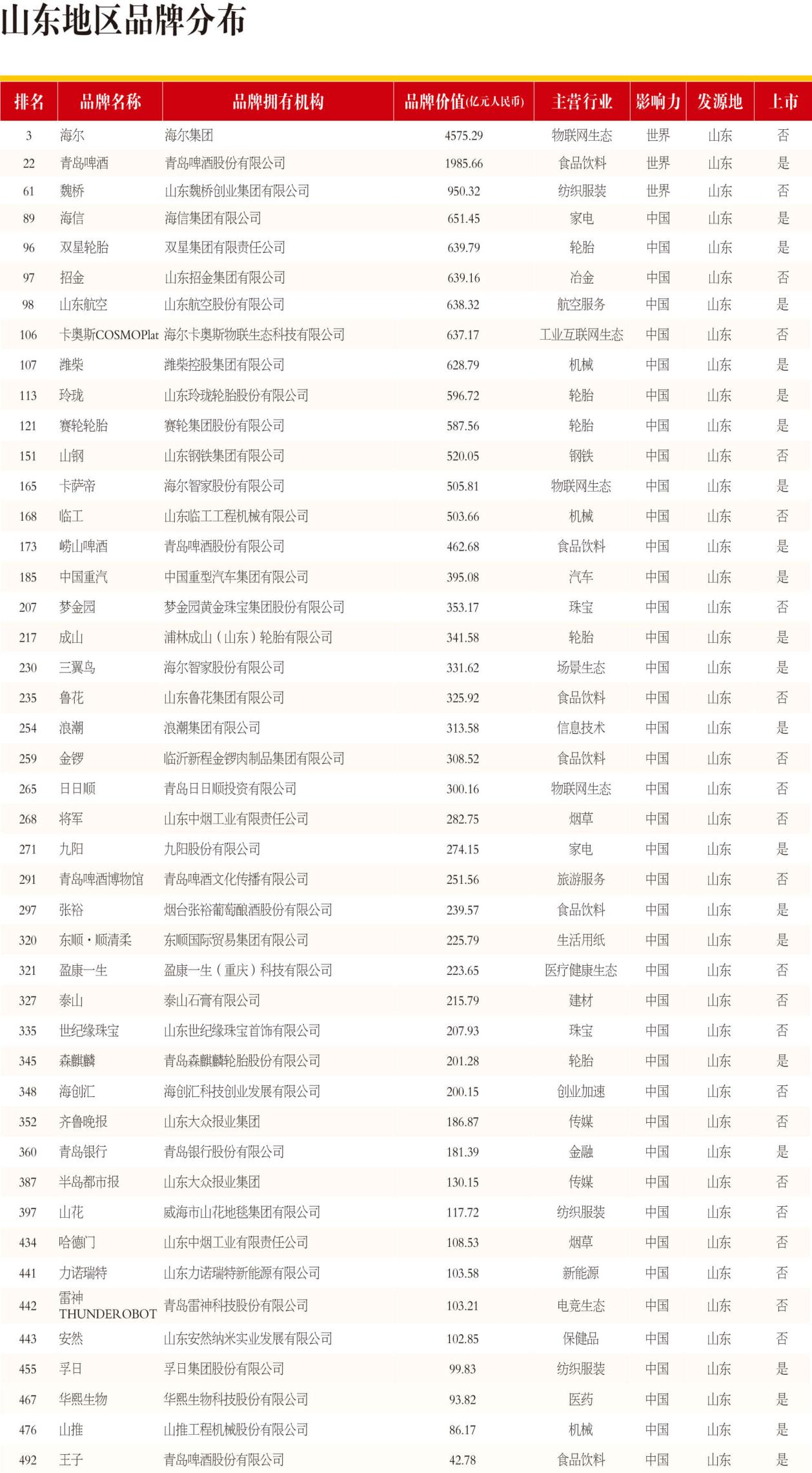 鲁网·泰山财经记者浏览榜单发现,青岛入选品牌有海尔、青岛啤酒、海信、双星轮胎、卡奥斯COSMOPlat、卡萨帝、崂山啤酒、赛轮轮胎、三翼鸟、日日顺、青岛啤酒博物馆、盈康一生、森麒麟、海创汇、青岛银行、半岛都市报、雷神、王子。其中,除海尔外,卡奥斯、卡萨帝、三翼鸟、日日顺、盈康一生、海创汇、雷神都是海尔旗下品牌。