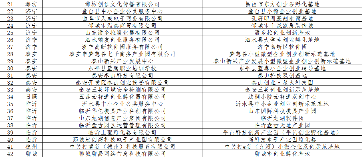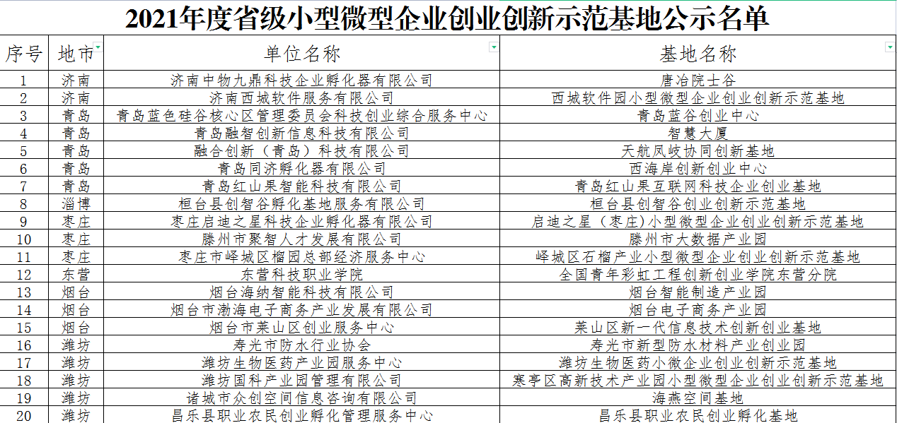 7日,山东省工业和信息化厅公布2021年度省级小型微型企业创业创新示范基地名单。