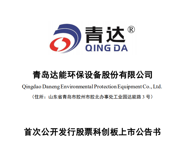 15日,青岛达能环保设备股份有限公司(以下简称“青达环保”)发布首次公开发行股票科创板上市公告书称,公司股票将于2021年7月16日在上海证券交易所(以下简称“上交所”)科创板上市。股票简称为青达环保,股票代码为688501。