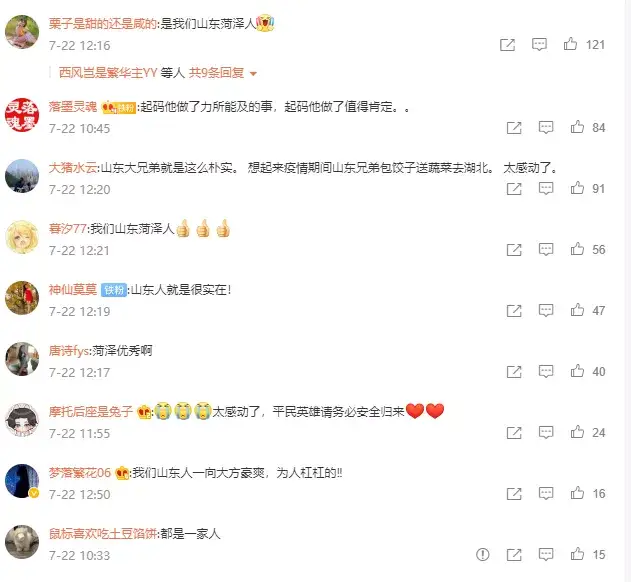 在郑州参与了救援后,又得知河南新乡遭遇强降雨的消息,他们5人中其中2人今天早上从郑州直接前往了新乡救援。他和另外2位朋友,上午到曹县送人,在曹县购买了救援物品又前往了新乡。